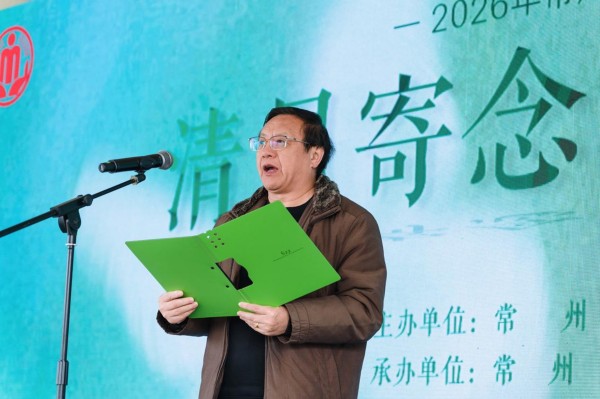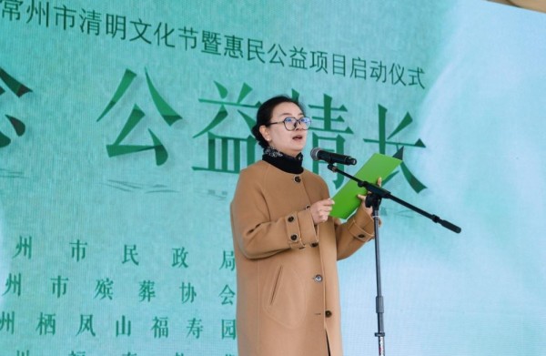 常州市殡葬协会副会长兼秘书长、常州栖凤山总经理徐晓旭宣读文明礼祭倡议书,号召市民响应倡议、传承优良家风,用绿色、节俭、安全、文化的方式缅怀故人,让清明更具温度与内涵。