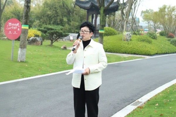周氏族人、常州市有光实验学校名誉校长周海燕女士发表讲话。她回顾周有光先生为国家文化事业作出的卓越贡献,细数先生严谨治学、淡泊名利的崇高品格,并寄语全体师生以先生为榜样,铭记先贤精神,勤学笃行、立志成才,将先生的精神薪火相传。